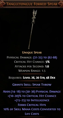 Saitha's Spear Barbed Spear features the following Modifiers: